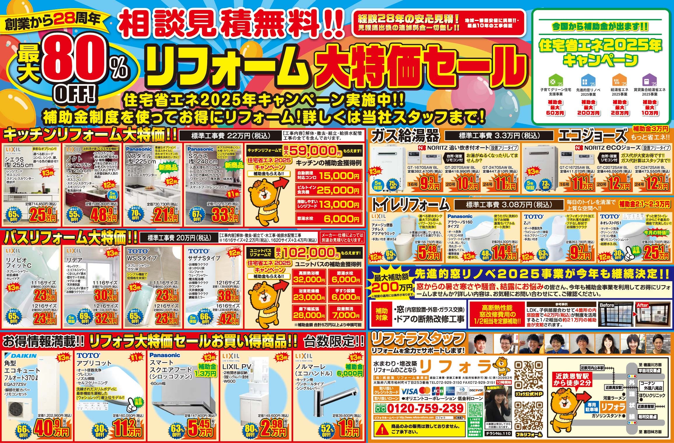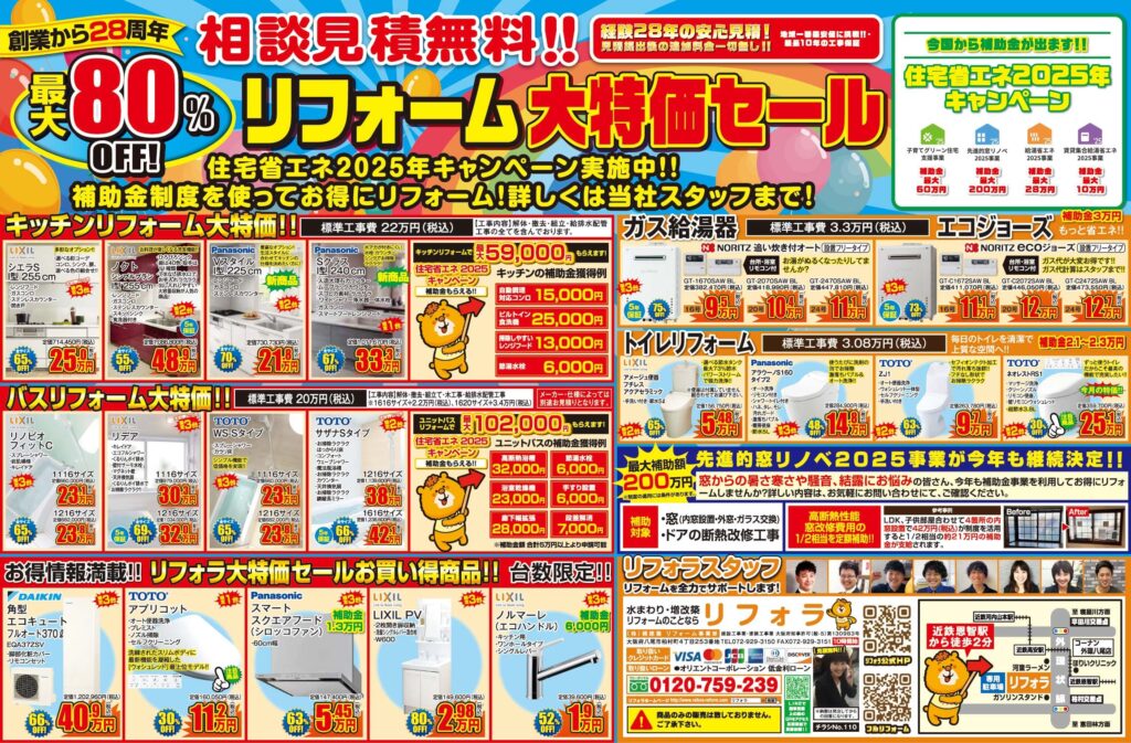 リフォーム応援!水回りリフォーム大特価キャンペーン!